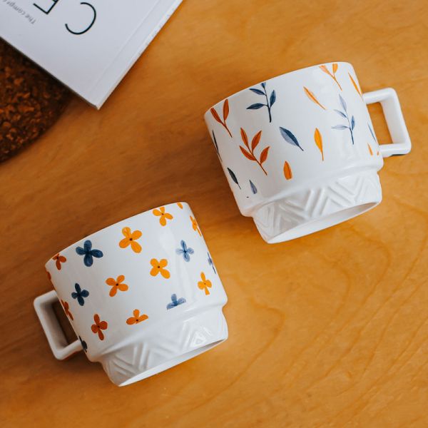Decal Pattern Ceramic Coffee Mug Cup Set Stackable And Stylish For Any Occasion Images |